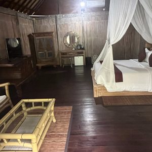 Le Lumbung possède un lit double de 180×200 et une surface de 36m². Les tarifs indiqués sont pour 2 personnes. Durée du séjour : 10 jours et 9 nuits à l’établissement 4* Keramas Sacred River Village, à Bali.